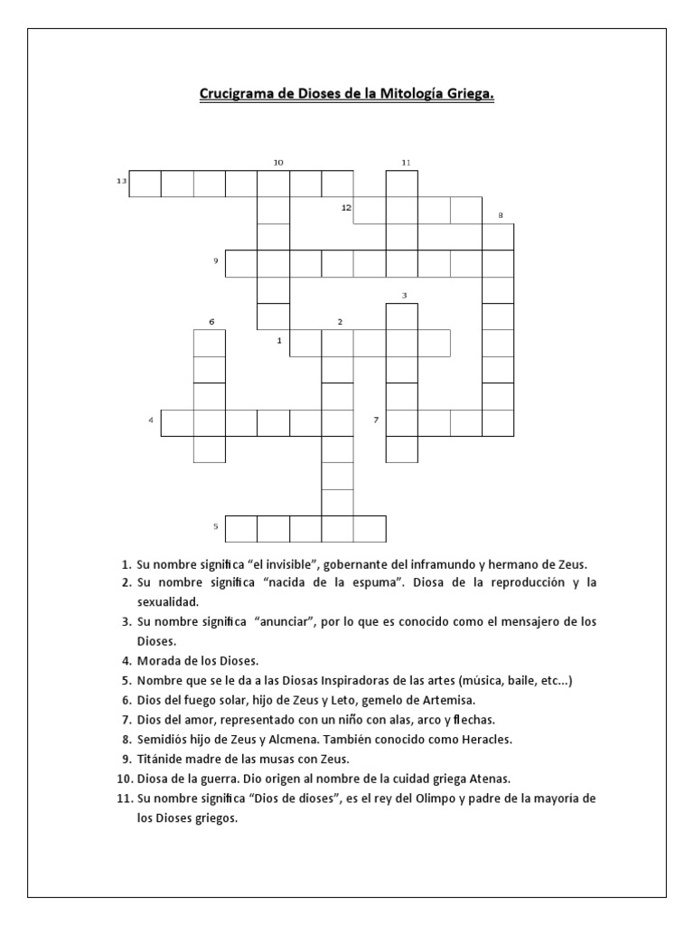 Resuelve el crucigrama diario online del 10/03/2022 Resuelve el crucigrama diario online del 10/03/2022. Cada día un nuevo crucigrama te espera en este juego de palabras online y gratis. Intenta resolverlo en el menor tiempo posible y, si te atascas en alguna palabra, puedes recurrir a la opción de pistas. Crucigrama - PressReader Diario de Yucatán. Crucigrama 2019-10-18 ... 49. Descantillar menudamente con los dientes. 51. Madre de Perseo. 53. Pieza del pernio en que está la espiga. 54. Poét., divino. ... Varilla en que se clava y se pone al fuego lo que se quiere asar. 35. Antigua moneda italiana. 36. Antigua ciudad de Asia menor en Cilicia, cerca de la actual ... MADRE DE PERSEO CON ZEUS - 5 letras - Crucigrama hija de acrisio y eurídice, y madre de perseo con zeus. madre de perseo, fecundada por zeus en forma de lluvia de oro. Madre de Perseo luego que Zeus la sedujo como lluvia de oro. Moisés Zeus olómpico o Perseo. Moisés, Zeus olímpico o Perseo. madre de perseo. madre con zeus de apolo y artemisa. Dánae fue madre de .. con Zeus. ᐅ Madre de Perseo - Crucigramas ES Recuerda, resolver crucigramas es una excelente manera de entrenar tu memoria, aprender mucho y desarrollar habilidades analíticas. Si has estado buscando la respuesta a Madre de Perseo, nos complace anunciarte que puedes encontrarla aquí con nosotros. Nuestra solución te ayudará a terminar tu crucigrama.