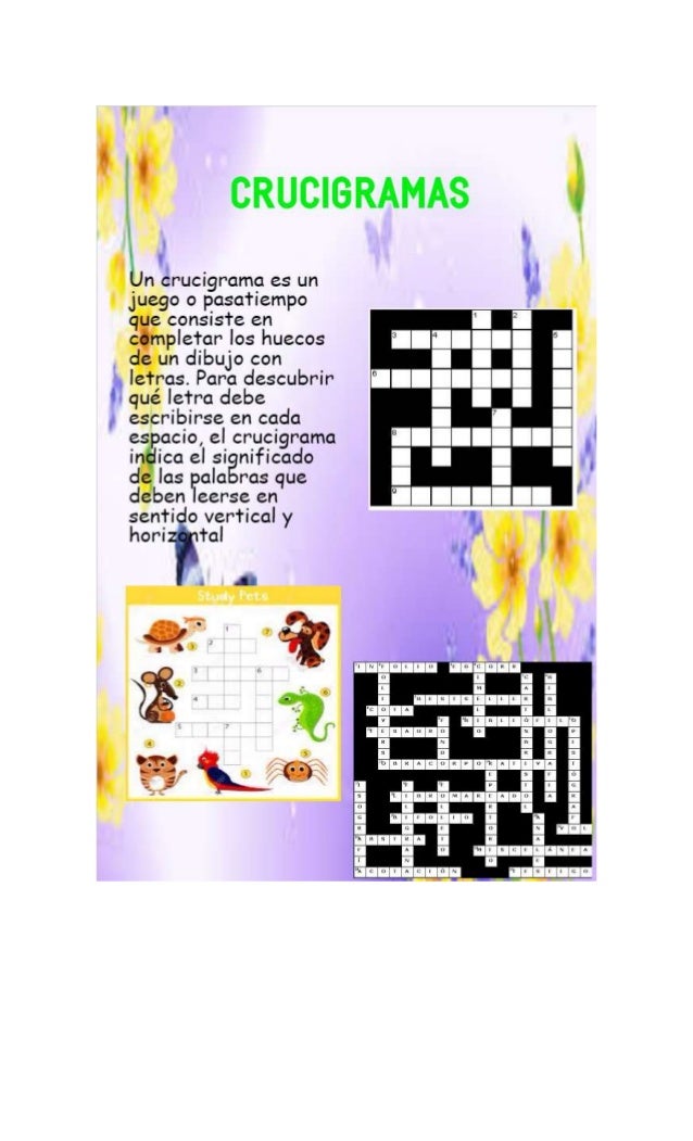 ¿QUÉ ES UN CRUCIGRAMA Y PARA QUÉ SIRVE? :: El-rincon-de ... Un crucigrama es un pasatiempo escrito que consiste en escribir en una plantilla una serie de palabras en orden vertical y horizontal que se cruzan entre sí. ¿PARA QUÉ ME SIRVE? Para estimular el cerebro, para ejercitar la memoria, para repasar temas, para aprender conceptos, para relacionar imagnes con dibujos, etc. Puzzles and Games from Universal Uclick Es una página que consta de seis juegos, todos muy entretenidos. Es una buena herramienta para ejercitar el cerebro. Frequency: 1x weekly with 6 different games. Crucigramas Diarios ... El crucigrama es un arma excelente para aumentar el número de los lectores. Muchos de ellos