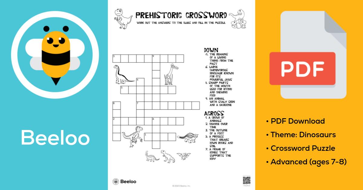 Prehistoric - 7 answers | Crossword Clues If you haven't solved the crossword clue Prehistoric yet try to search our Crossword Dictionary by entering the letters you already know! (Enter a dot for each missing letters, e.g. “A.CIE..” will find “ANCIENT” and “A.CHA..” will find “ARCHAIC”) Also look at the related clues for crossword clues with similar answers to ...