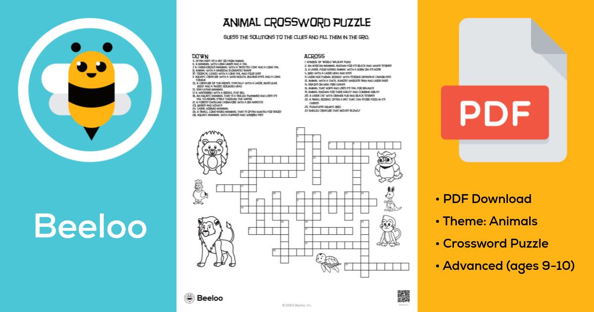 Animal Crossword Puzzle • Beeloo Printable Crafts for Kids