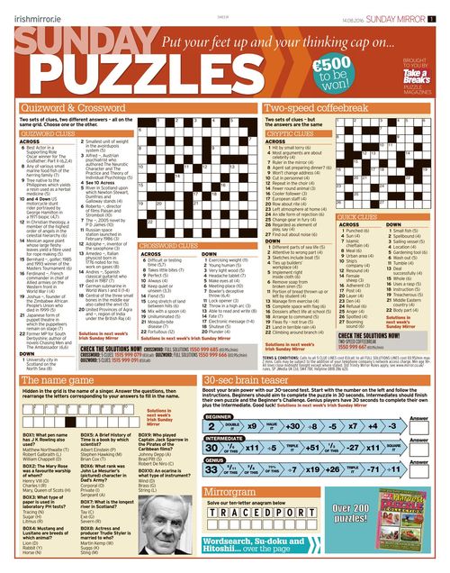 Daily mirror the name game answers. Daily Crossword | Free Online Game | Mirror We are excited to present a new look for your favourite Mirror Daily Crossword, plus many more puzzles and games, including all time favourites like the Quick Crossword, Daily Sudoku,... Name That Ride March 25, 2023 - GameAnswer We have compiled all the necessary information to help you solve the puzzle : Name That Ride March 25, 2023. Understanding that it can be difficult, we have used various methods to provide you with the answer. Name That Ride March 25, 2023: Callaway C12 (1997) Since this is a daily puzzle, this is the only solution for Name That Ride March 25 ... The name game - PressReader Daily Mirror The name game 2021-12-30- Hidden in the grid is the name of a film. Answer the questions, then rearrange the letters corresponding to your answers to fill in the name. BOX1: Which of these is a long, narrow inlet formed by the partial submergence of a river valley? A nia (W) A hia (S) A ria (H) Mirror - Crosswords, Puzzles and Games | Free Online Games, Puzzles ... Welcome to our New Puzzles & Games section! We are excited to present a new look for your favourite Mirror Daily Crossword, plus many more puzzles and games, including all time favourites...